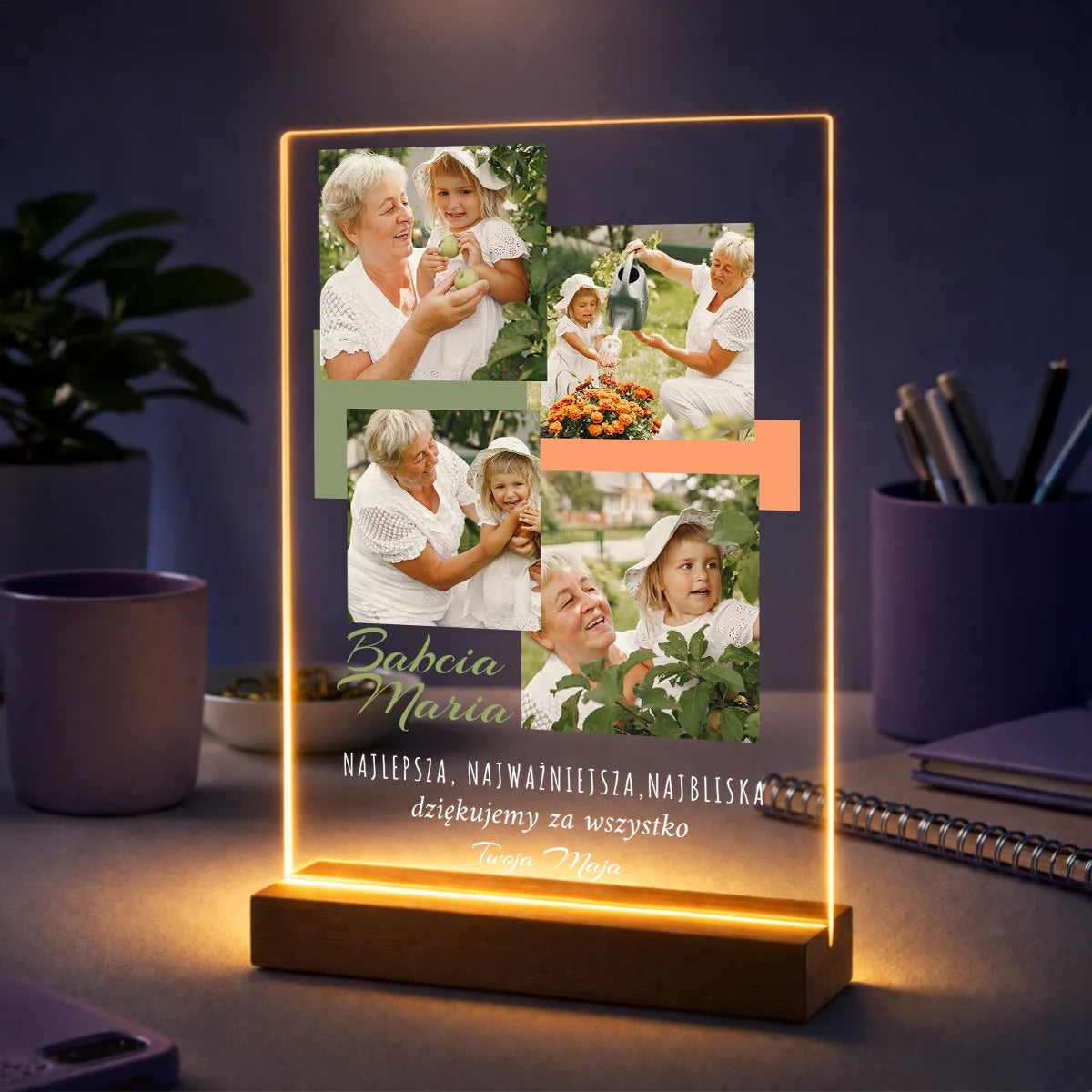 Oryginalny prezent dla babci na urodziny – kolaż 4 zdjęć na szkle z życzeniami od wnuczki