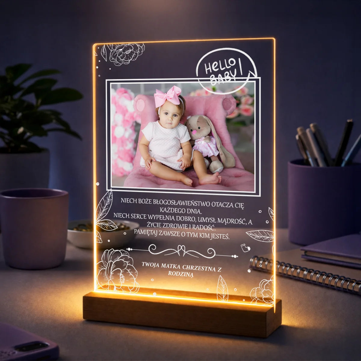 Oryginalny prezent dla dziecka na chrzest – zdjęcie na szkle + tekst od matki chrzestnej