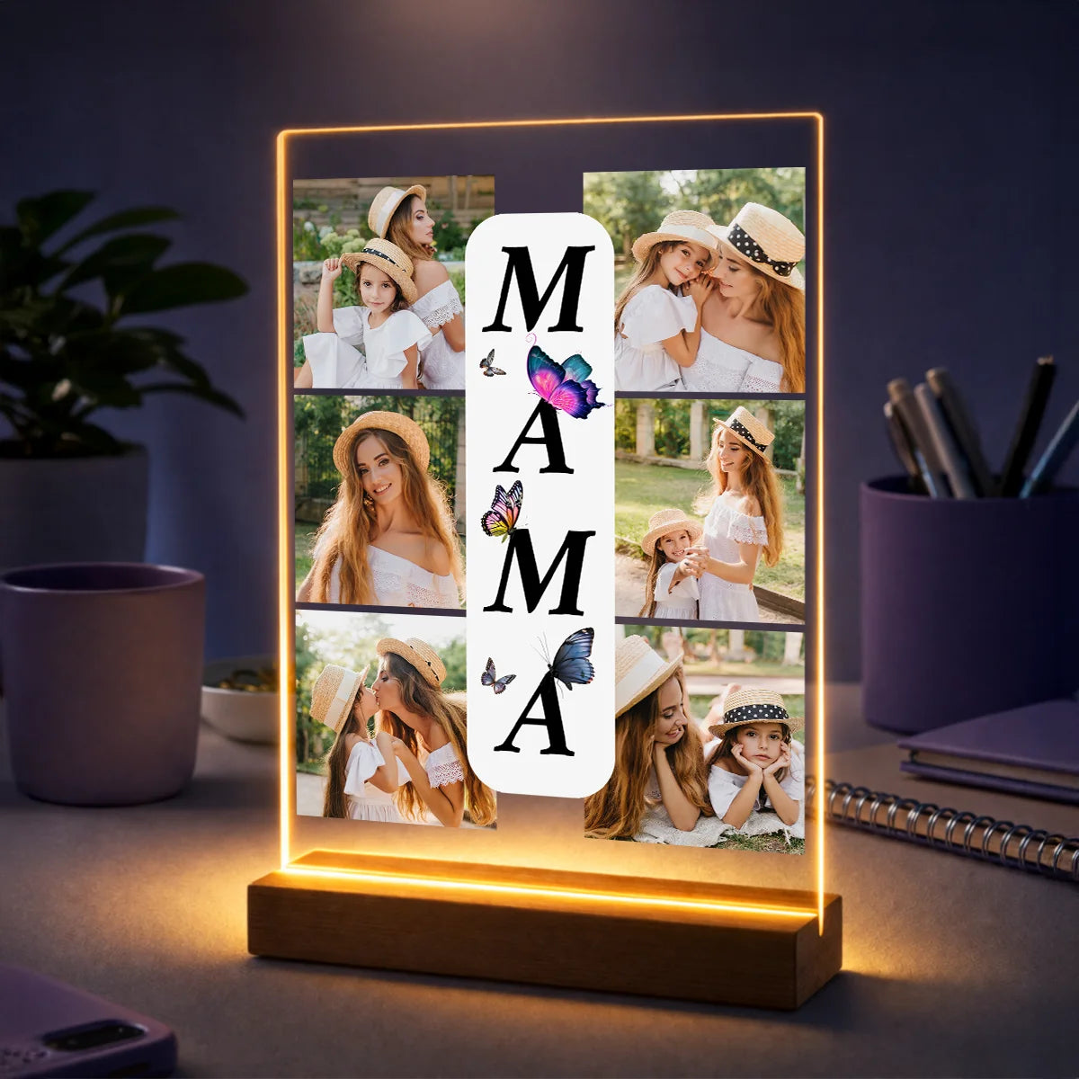 Prezent dla mamy na Dzień Matki – kolaż z 8 zdjęć na szkle i napis MAMA
