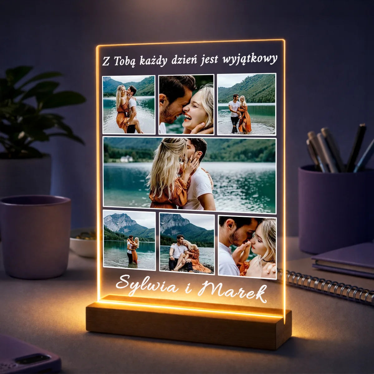 Oryginalny prezent dla pary na rocznicę – kolaż zdjęć personalizowany na szkle z imionami pary
