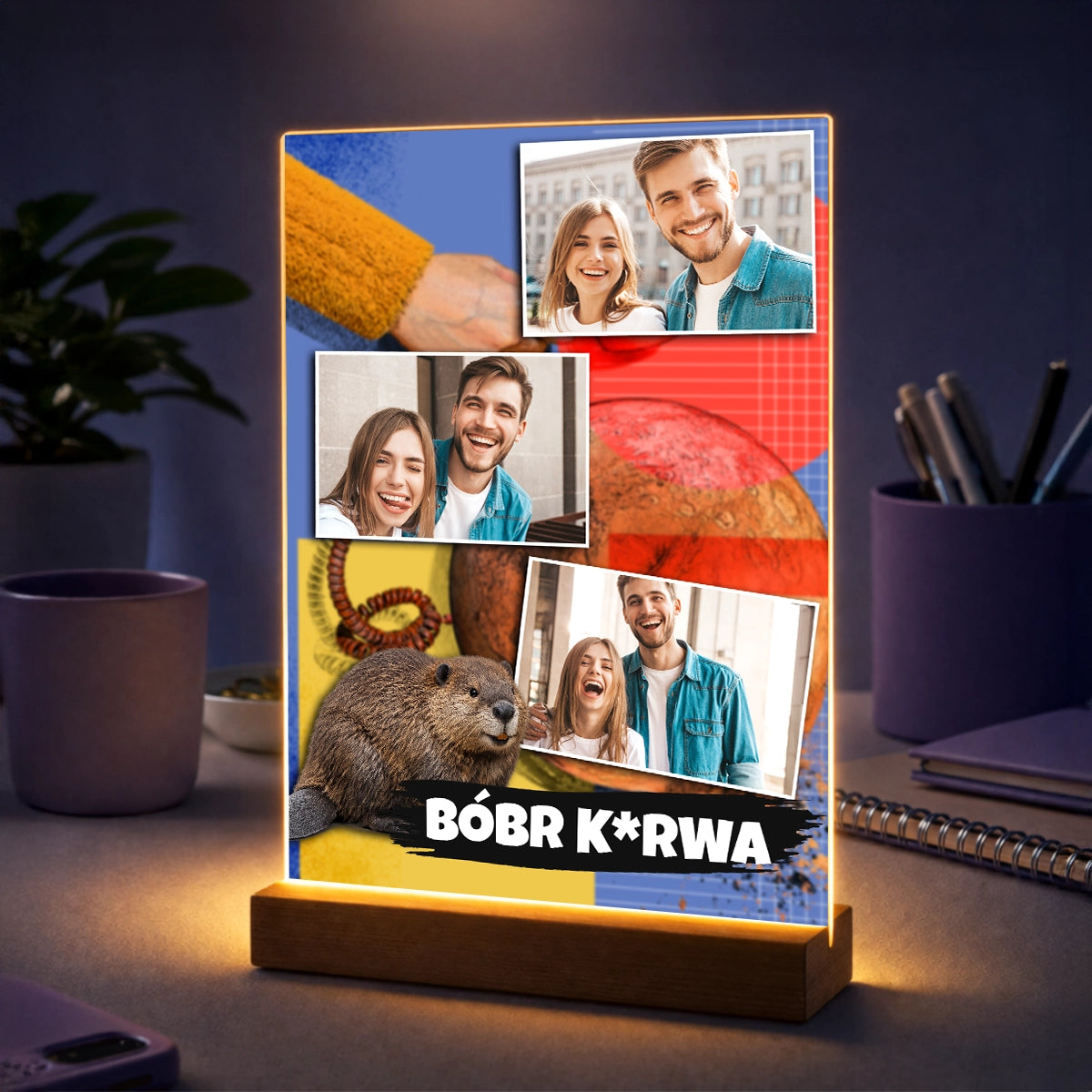 Oryginalny prezent dla niej lub dla niego na urodziny – kolaż zdjęć na szkle w stylu mema