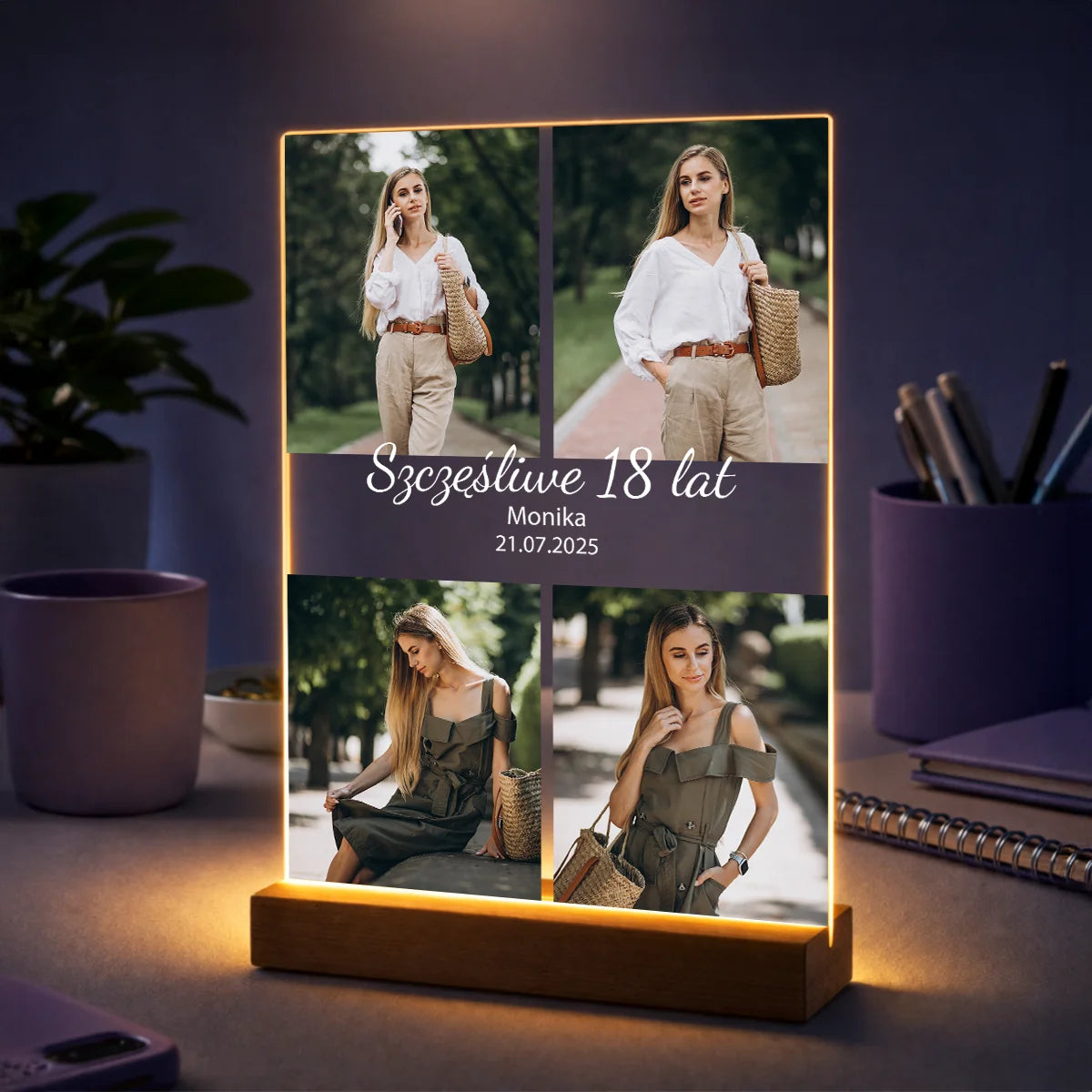 Prezent urodzinowy dla niej – kolaż zdjęć na szkle z imieniem i życzeniami