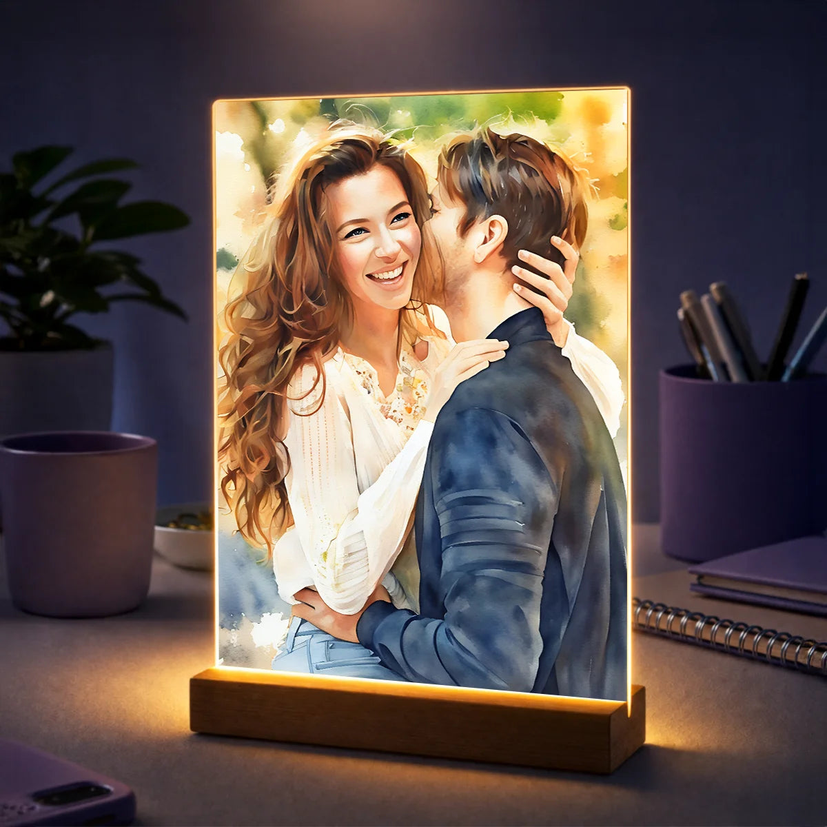 Oryginalny prezent dla pary na rocznicę – portret ze zdjęcia na szkle styl akwarela