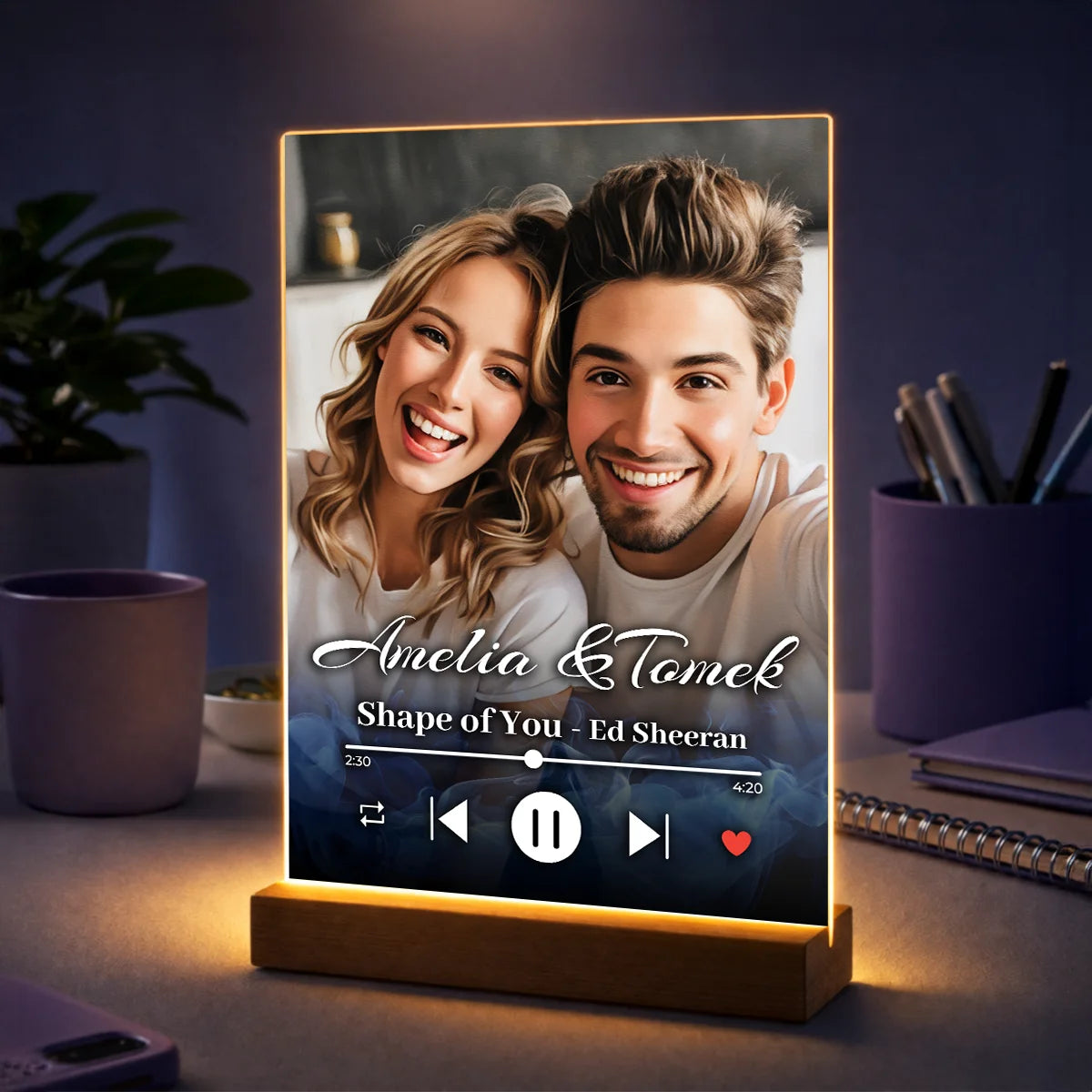 Oryginalny prezent dla pary na rocznicę – zdjęcie na szkle z imionami i piosenką