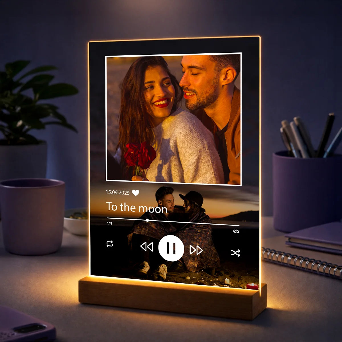 Pomysł na prezent dla pary na rocznicę – zdjęcie na szkle z tekstem Music Memory