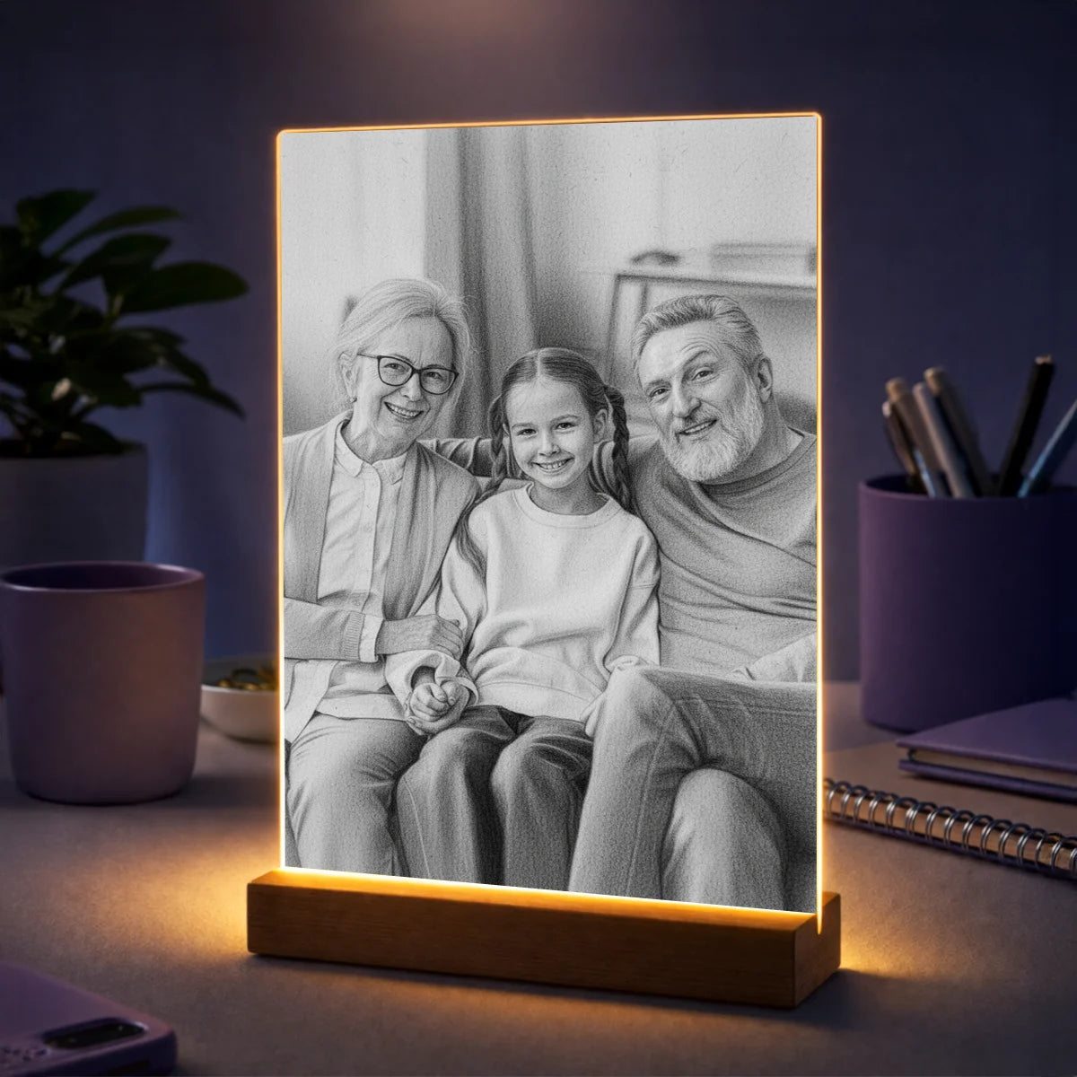 Prezent dla dziadków na Dzień Babci i Dziadka – portret z ich zdjęcia na szkle w stylu szkicu