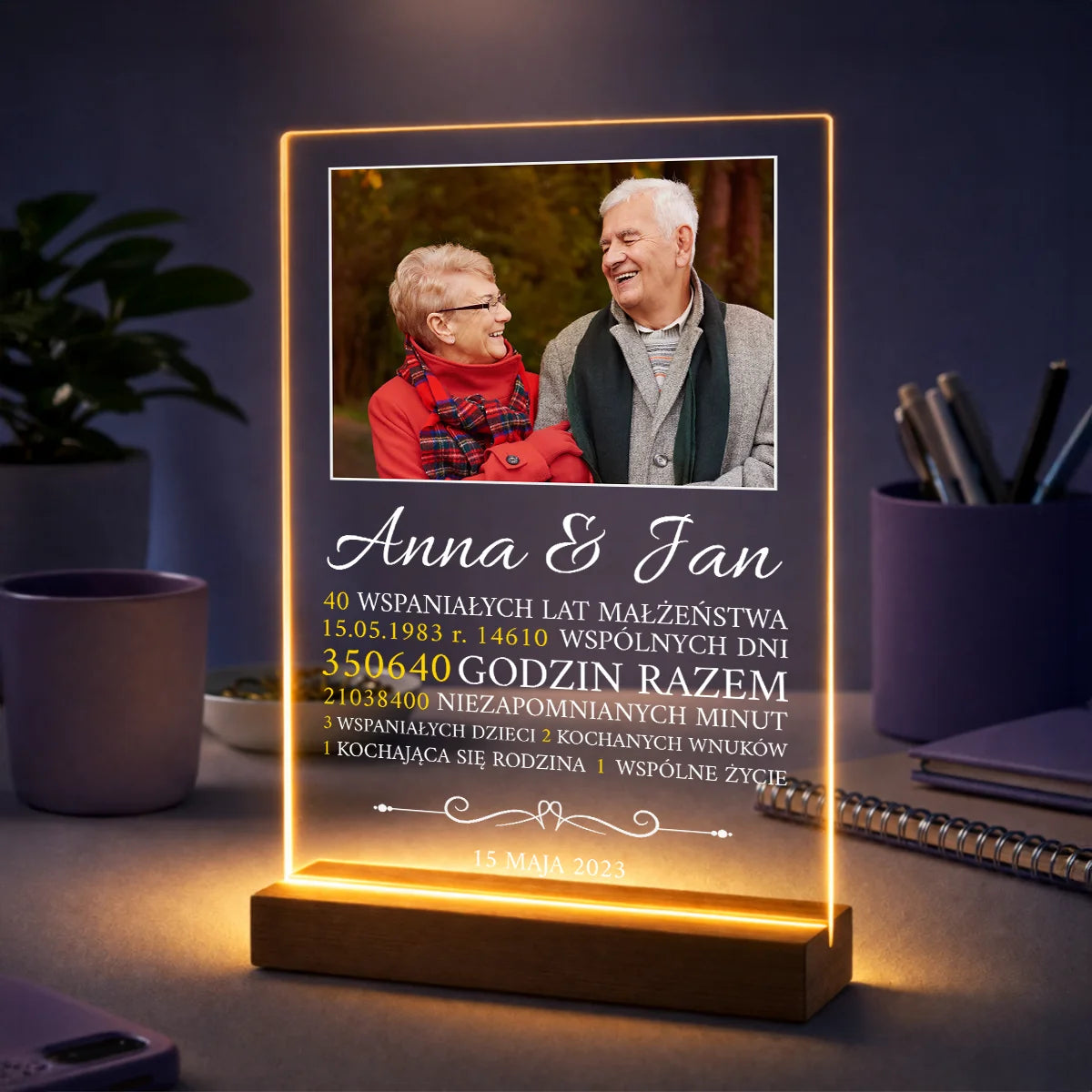 Pomysł na prezent dla małżeństwa na 40 rocznicę – zdjęcie na szkle z tekstem Razem przez lata