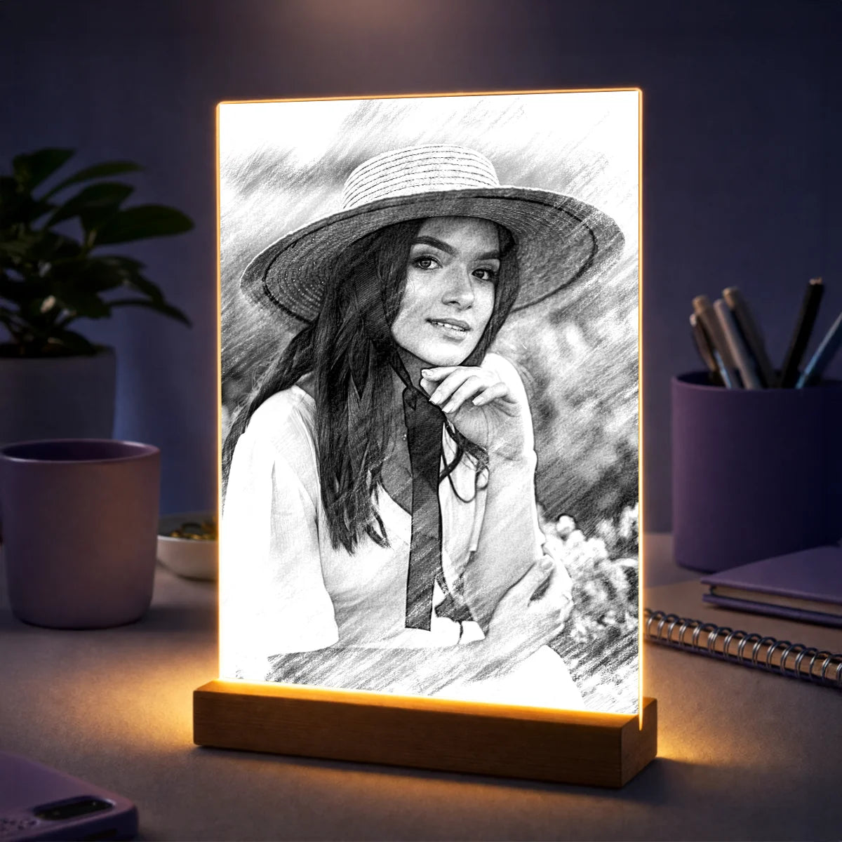 Pomysł na prezent dla niej na urodziny – portret ze zdjęcia na szkle w stylu szkicu ołówkiem