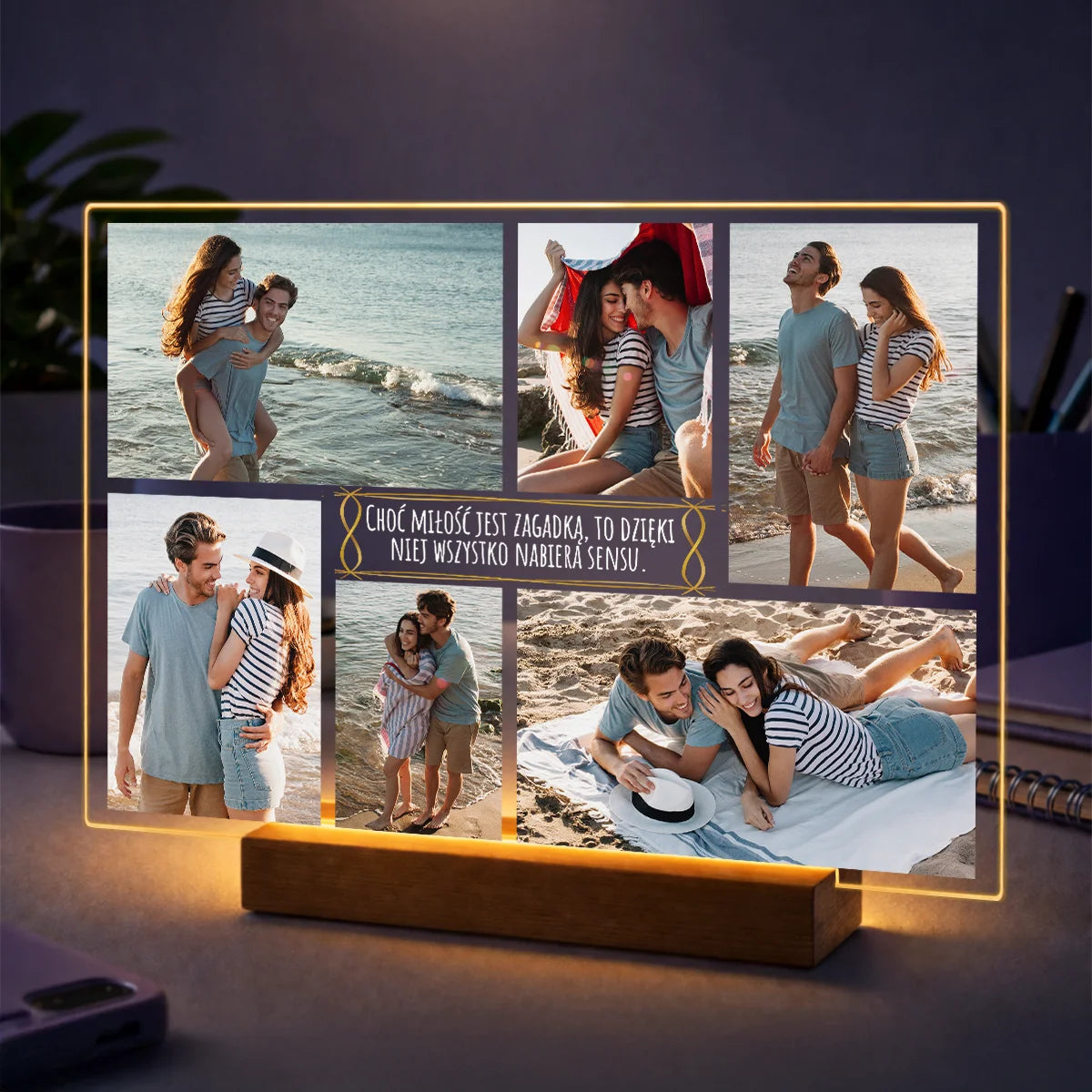 Pomysł na prezent dla pary na rocznicę – kolaż zdjęć na szkle Miłość to zagadka