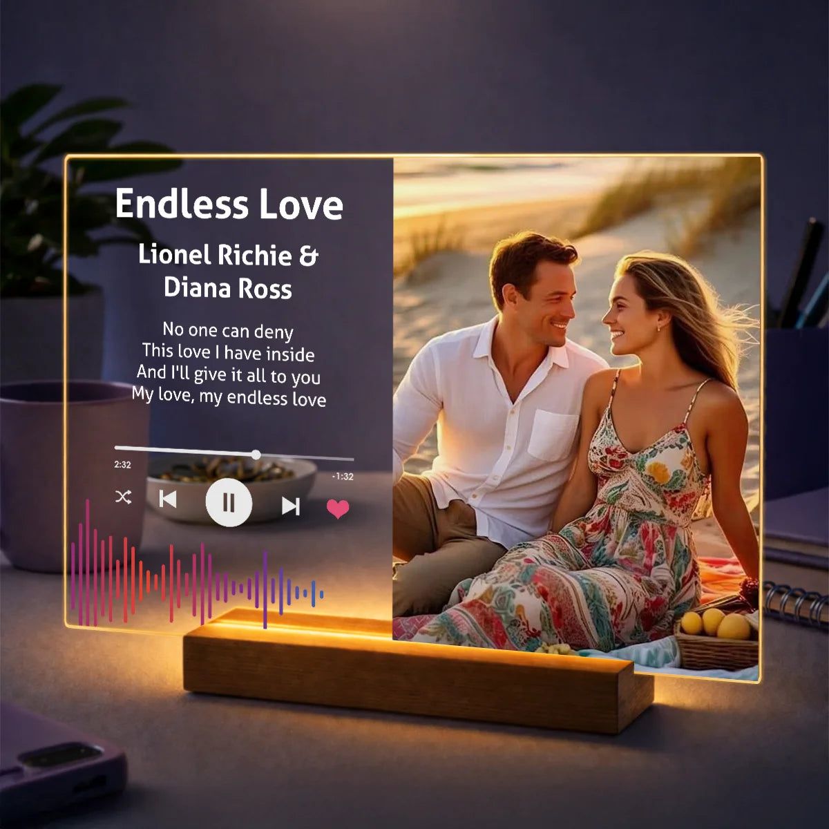 Pomysł na prezent dla pary na rocznicę – zdjęcie na szkle z tekstem Music Memory