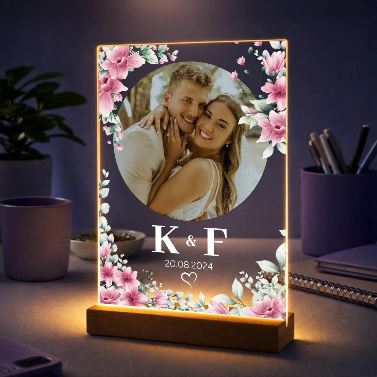 Pomysł na prezent dla pary na ślub – zdjęcie na szkle z inicjałami i datą ślubu