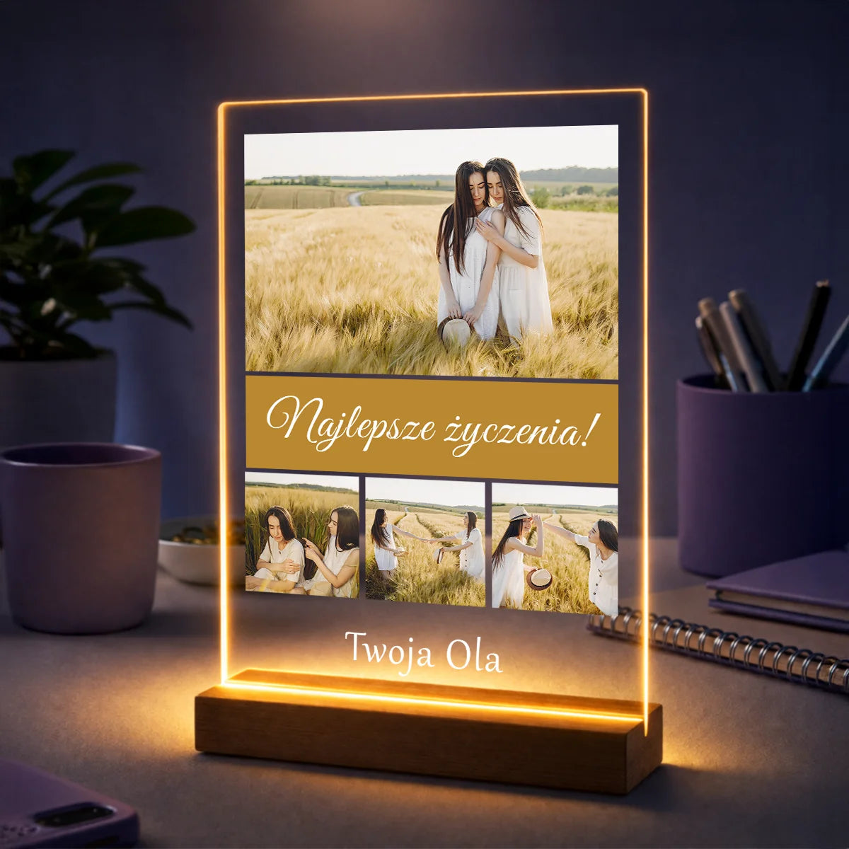 Pomysł na prezent dla przyjaciółki na urodziny – kolaż z 4 zdjęć na szkle Najlepsze Życzenia