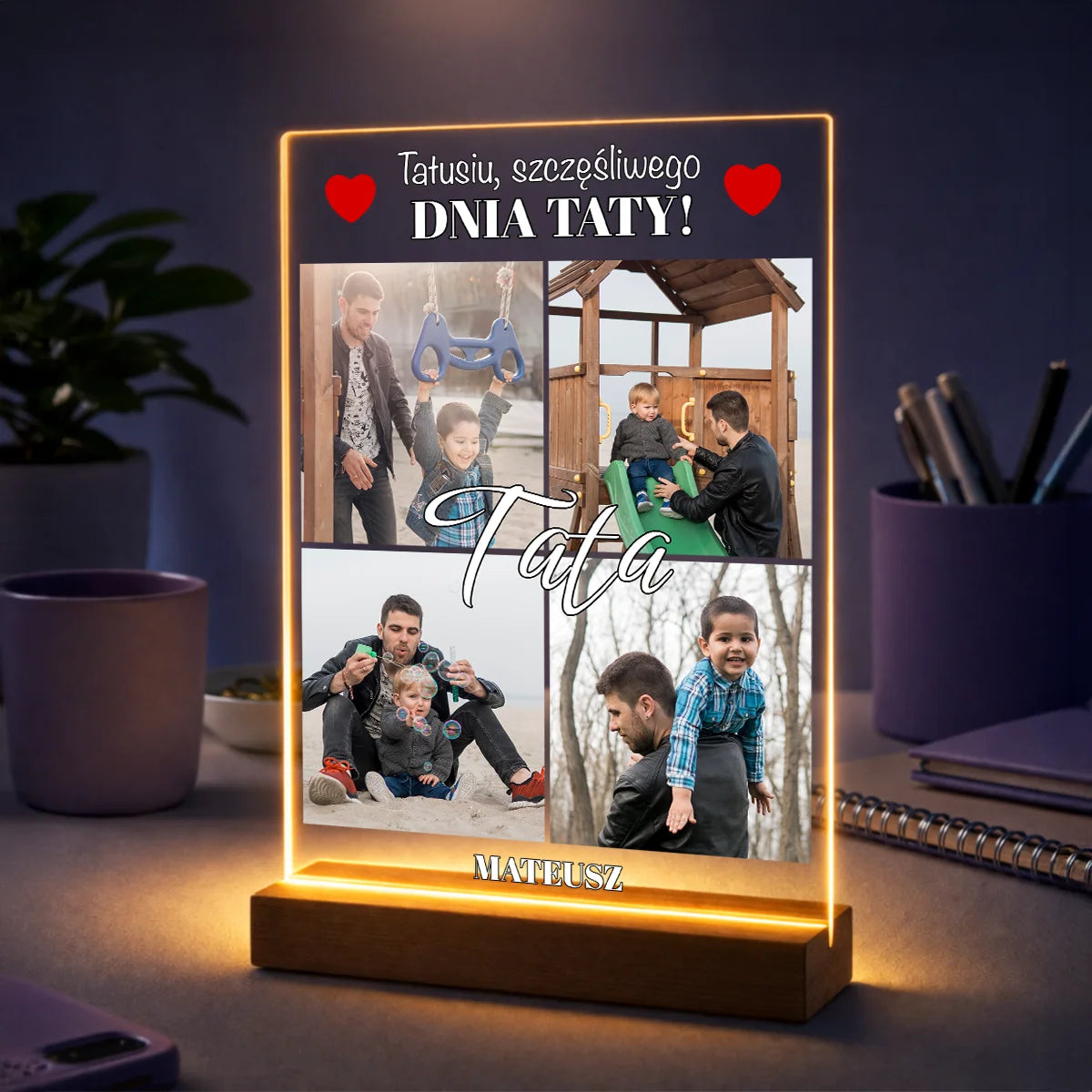 Oryginalny prezent dla taty na Dzień Ojca – kolaż ze zdjęć na szkle Tatusiu