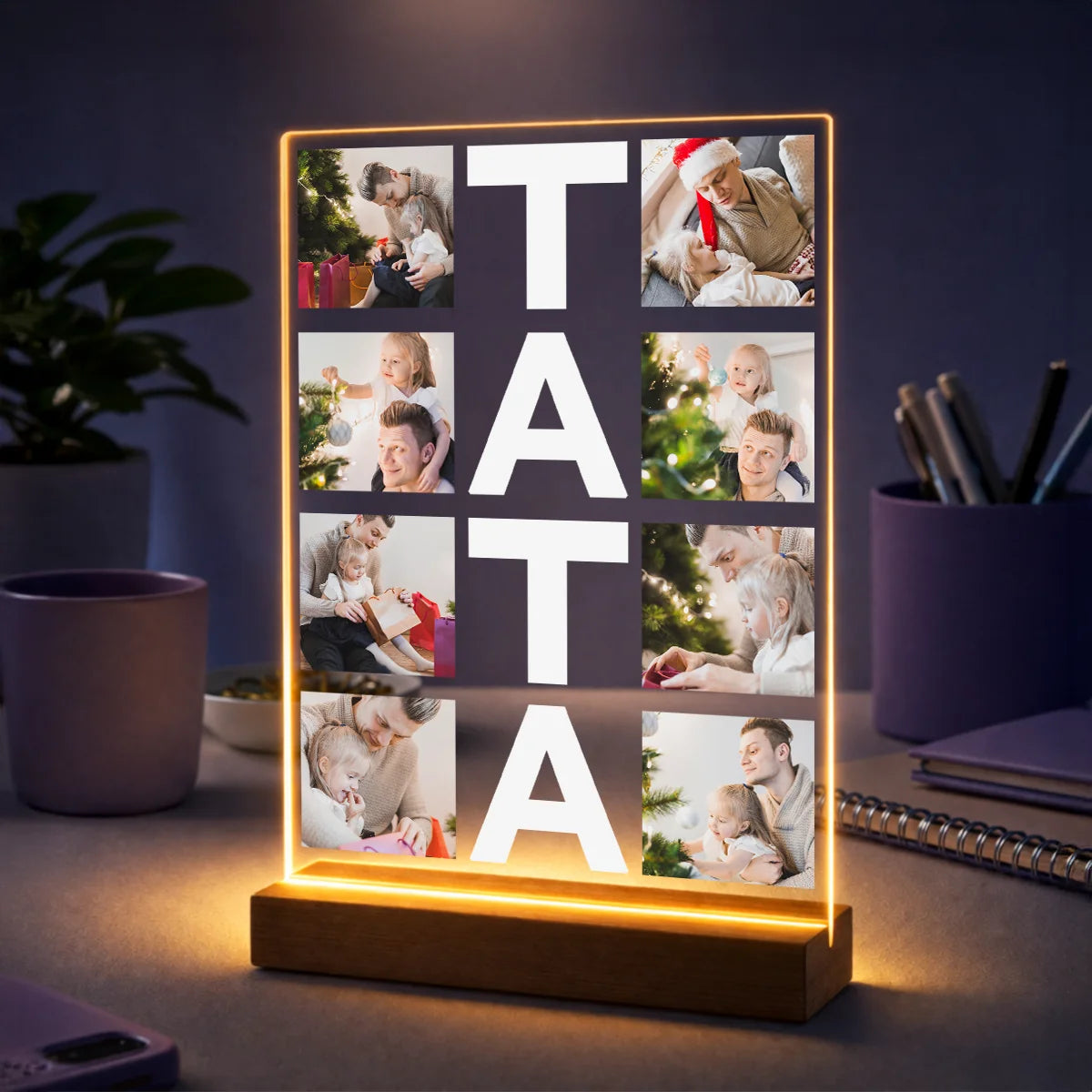 Pomysł na prezent dla taty na święta – kolaż 8 zdjęć na szkle Galeria wspomnień z napisem TATA