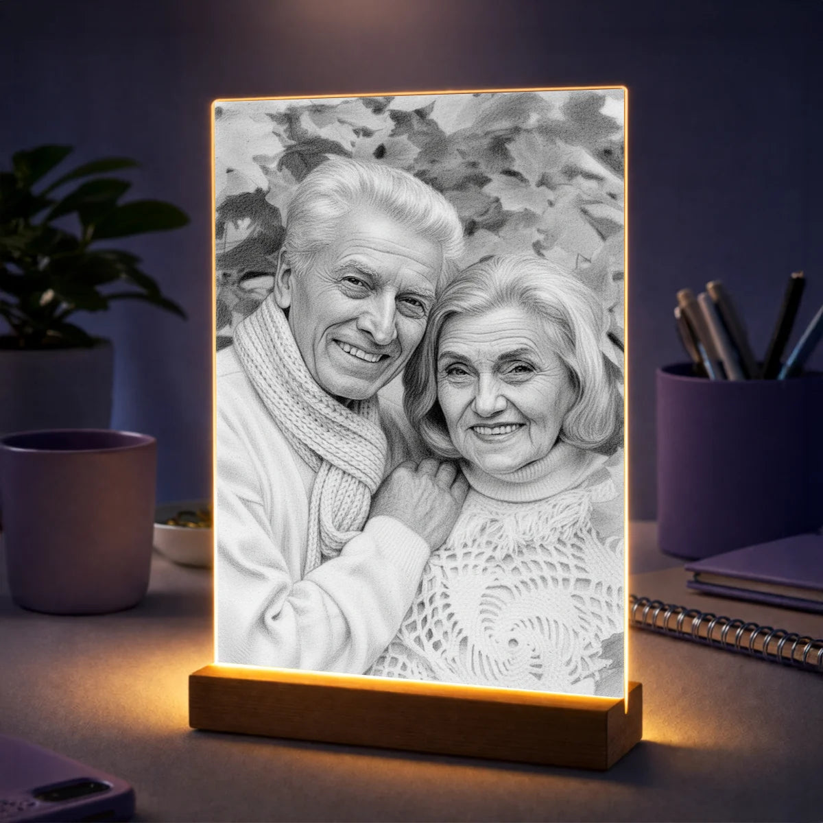 Prezent dla dziadków na Dzień Babci i Dziadka – portret z ich zdjęcia na szkle w stylu szkicu