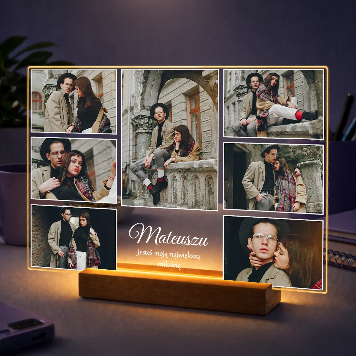 Oryginalny prezent dla pary na rocznicę – kolaż zdjęć personalizowany na szkle z imionami pary