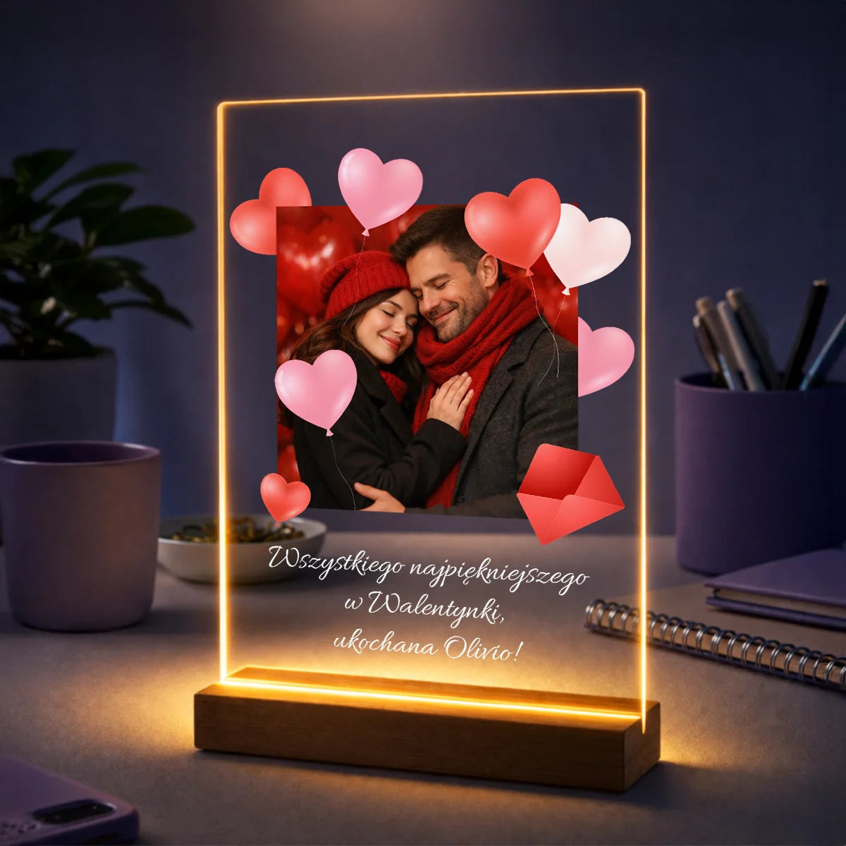 Oryginalny prezent dla pary na Walentynki – zdjęcie na szkle z dowolnym tekstem od serca