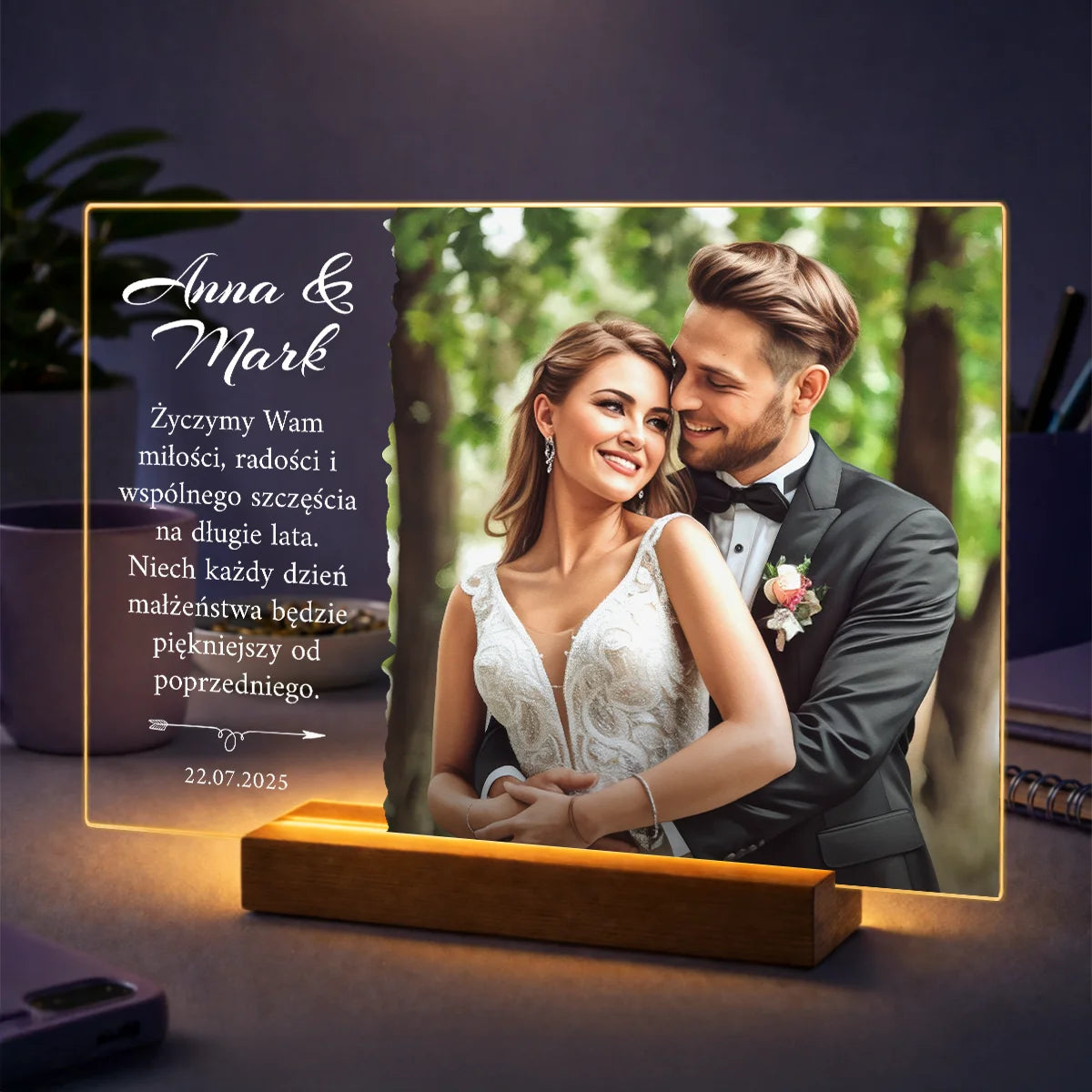 Pomysł na prezent dla pary na rocznicę – zdjęcie na szkle z Twoim dowolnym napisem