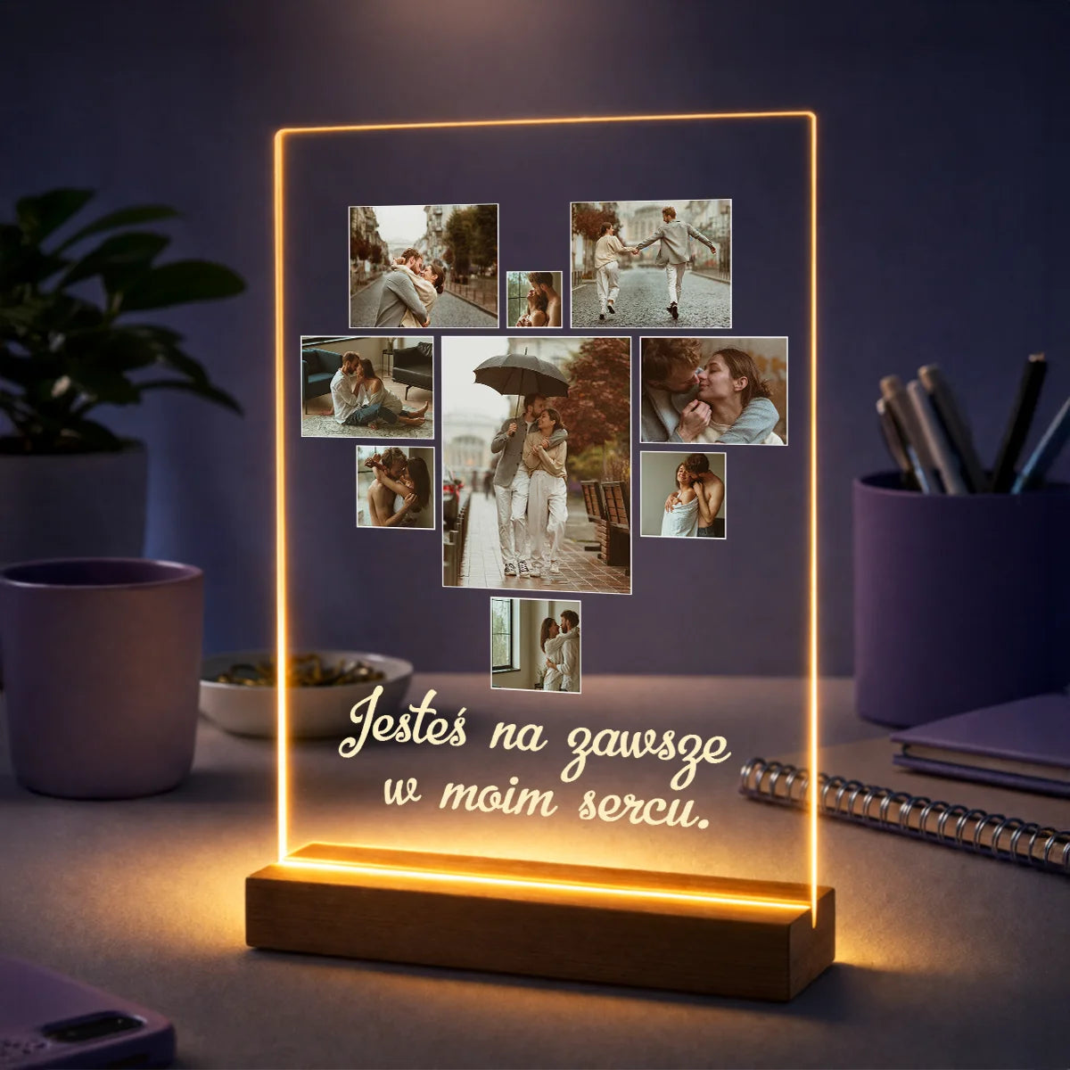 Prezent dla pary na rocznicę – kolaż zdjęć na szkle Serce z fotografii + tekst