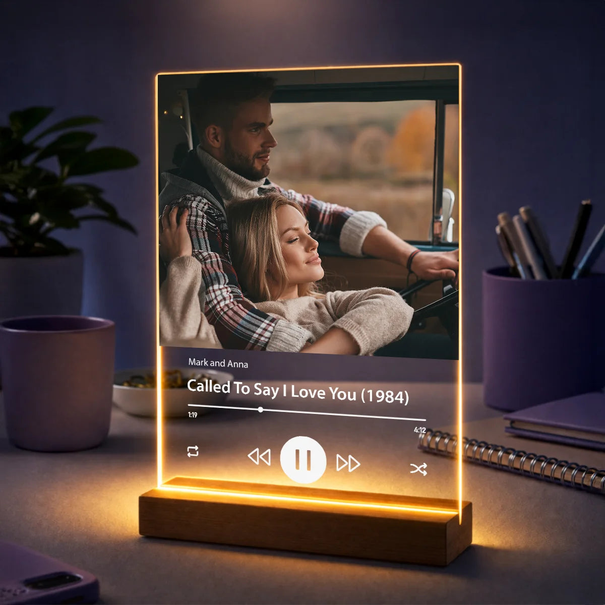 Oryginalny prezent dla pary na rocznicę – zdjęcie na szkle z imionami i piosenką