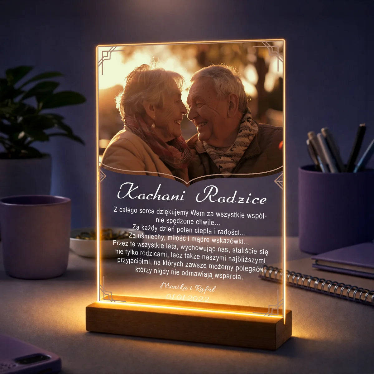 Pomysł na prezent dla rodziców na święta – zdjęcie na szkle + imiona Rodzinne Wspomnienia