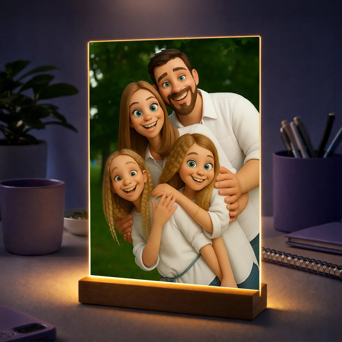 Prezent dla rodziców na święta – portret ze zdjęcia na szkle bajkowy styl Twoja rodzina