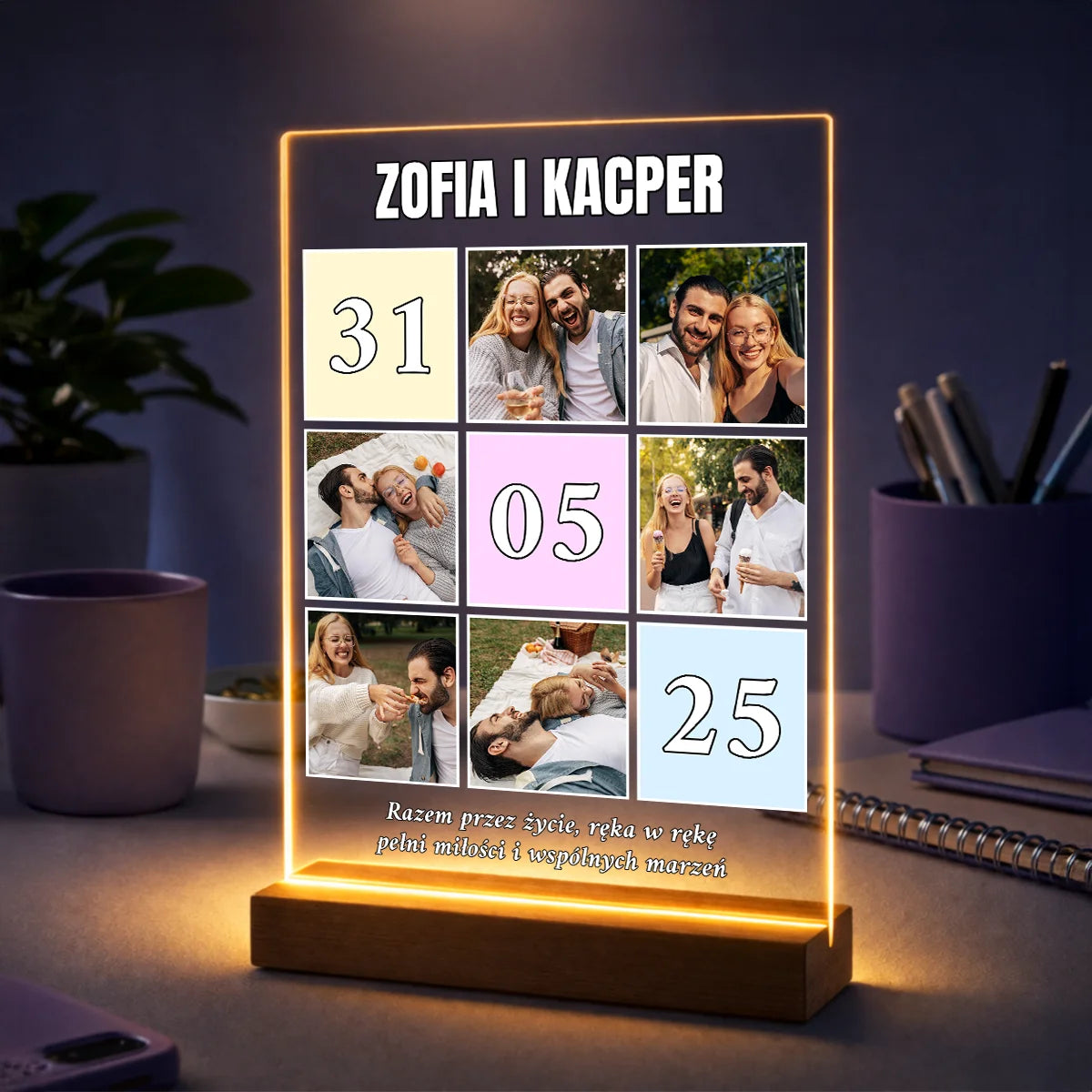 Oryginalny prezent dla pary na rocznicę – kolaż zdjęć personalizowany na szkle z imionami pary